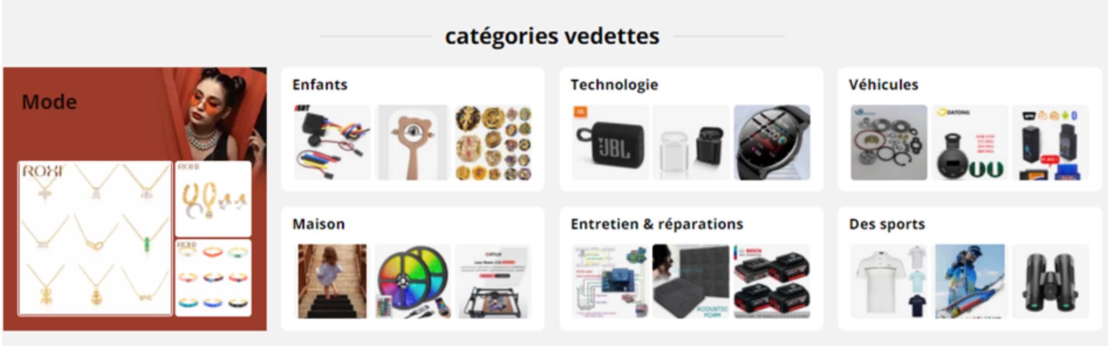 À l’heure actuelle, le site est implanté en Chine et collabore avec plus de 100 000 fournisseurs. Le site propose actuellement plus d’un million de produits. Une fois sur le site, vous pouvez parcourir les différentes catégories de produits.