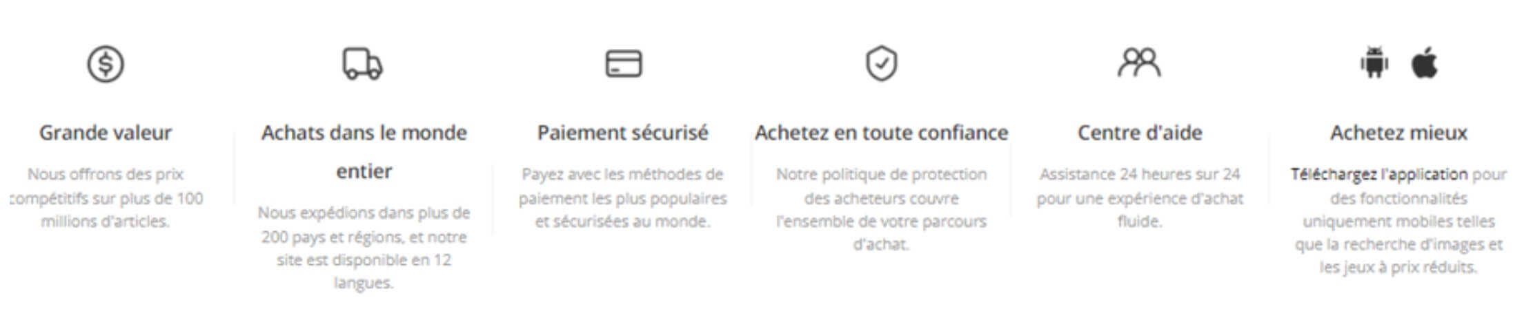 La plateforme rassure de prime abord les acheteurs en offrant la possibilité de demander un remboursement si le colis n’arrive pas à destination ou s’il ne ressemble pas à la description.