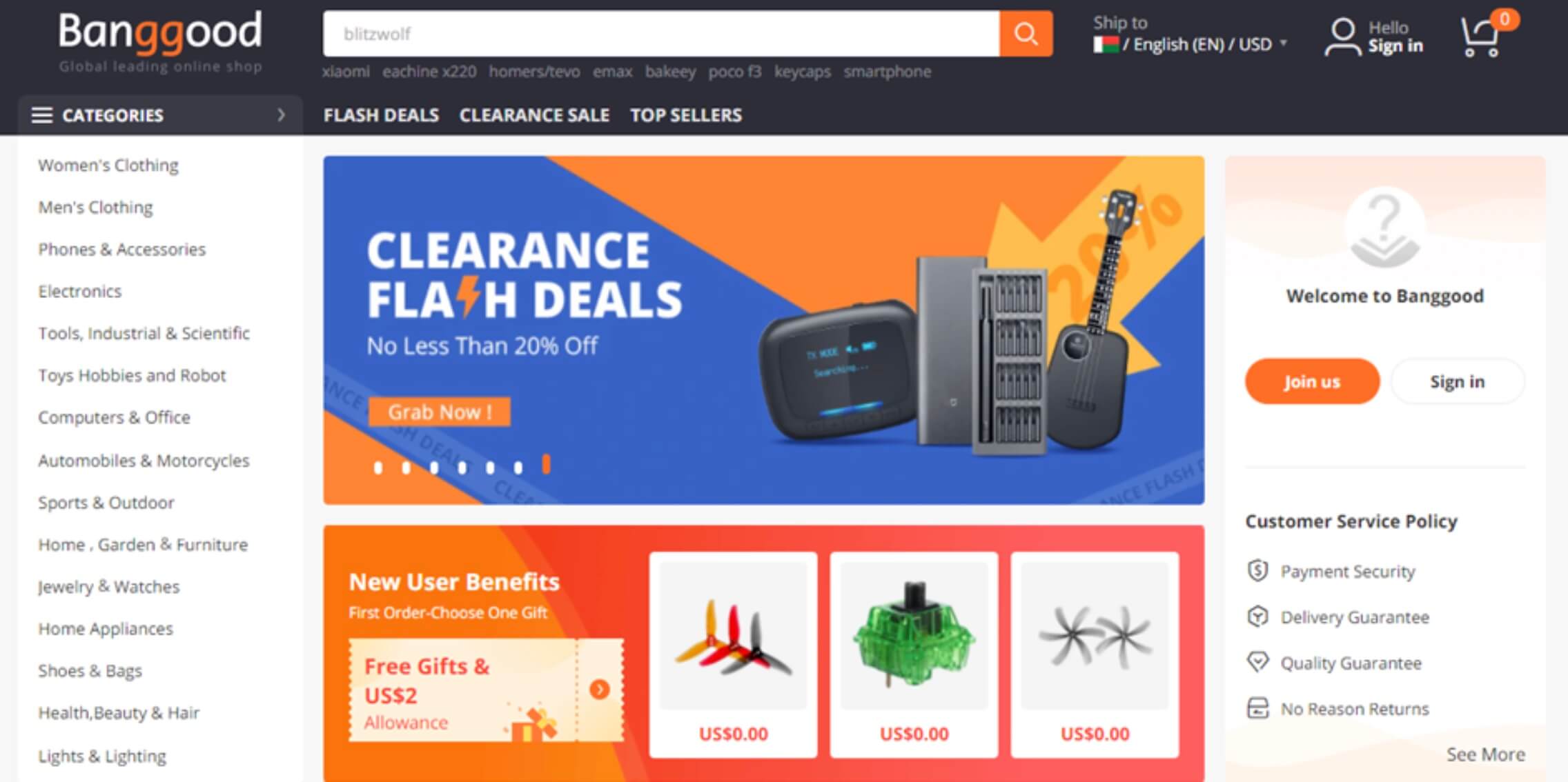 Comme Gearbest, Banggood.com se spécialise surtout dans la vente de produits électroniques, tels que les objets télécommandés, les projecteurs, les smartphones et plusieurs gammes d’appareils électroniques chinois ou de fabrication chinoise. Toutefois, on peut toujours trouver les autres produits des catégories mentionnées plus en haut.
